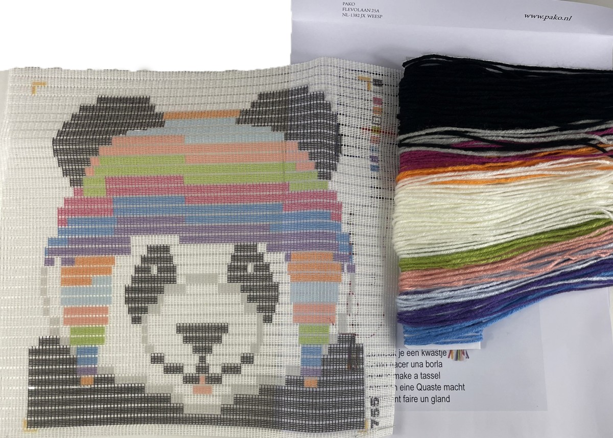 Funny embroidery kit one stitch of panda for starting embroiderers or children . Easy to make on pre-printed canvas. Good for fine motor skills and concentration of kids. Nice to give and to make !