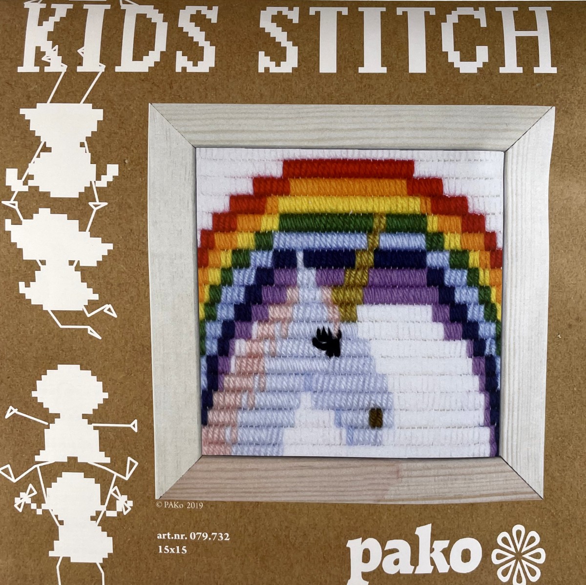 Funny embroidery kit for children short flat stitch unicorn Easy to make on pre-printed canvas. Good for fine motor skills and concentration of kids. Nice to give and to make!