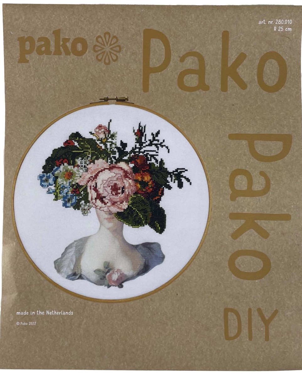 borduurpakket portret Manon Balletti ,vrouw met een mooi boeket.