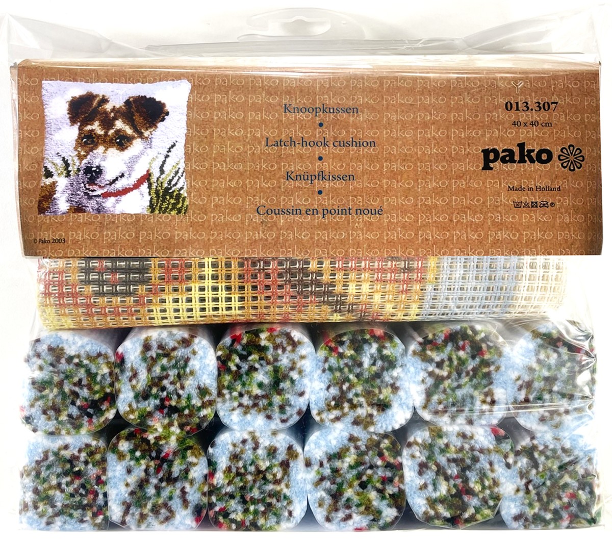 Een knooppakket jack russell kussen op voorbedrukt stramien om gemakkelijk te knopen !